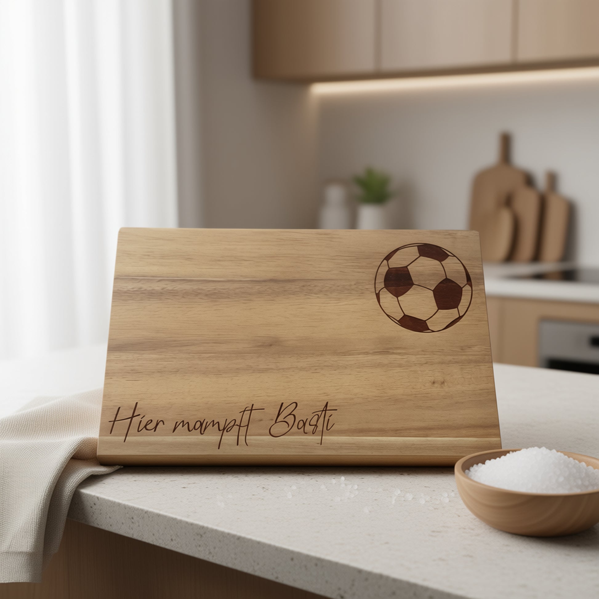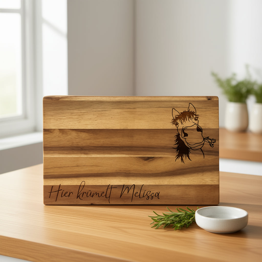 Dieses hochwertige Brotzeitbrett aus nachhaltigem Akazienholz wird auf Wunsch individuell graviert – zum Beispiel mit Namen, Initialen, einem Datum oder einer kurzen Botschaft. So wird dein Frühstücksbrett oder Servierbrett zu einem einzigartigen Geschenk, das von Herzen kommt.