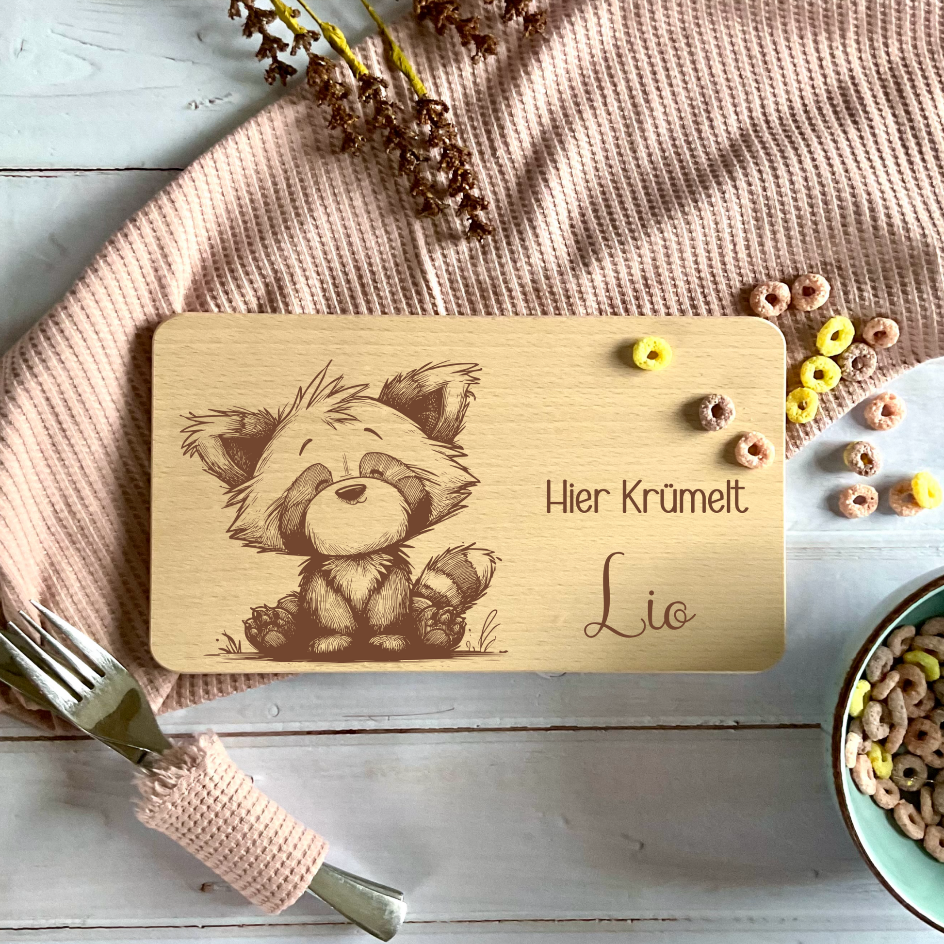 Unser liebevoll gestaltetes Frühstücksbrett für Kinder aus europäischem Buchenholz bringt Spaß und Natürlichkeit auf den Tisch. Wähle aus verschiedenen süßen Motiven und schenke kleinen Frühstücksfans ihren ganz persönlichen Lieblingsplatz am Tisch.