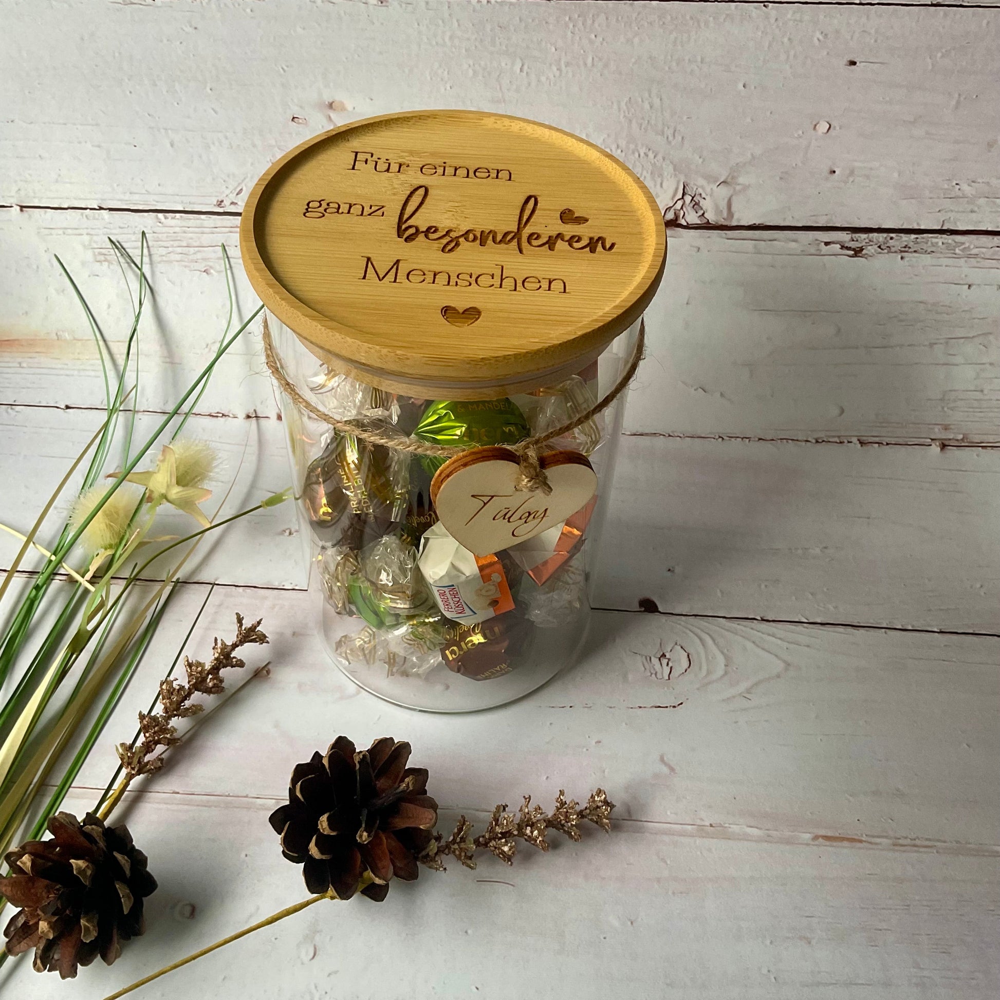 Mit diesem einzigartigen Vorratsglas hast du eine wundervolle Geschenkidee um deinen Liebsten einfach mal Dankeschön zu sagen oder Freude zu verschenken 💗.